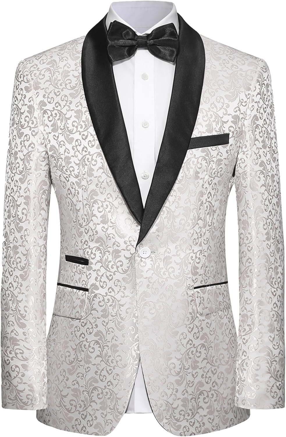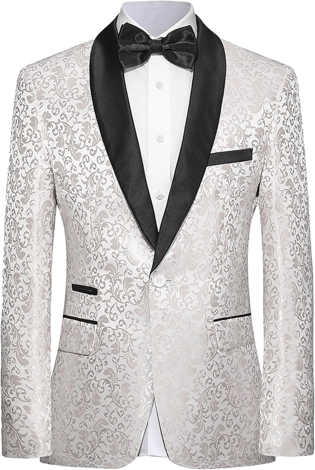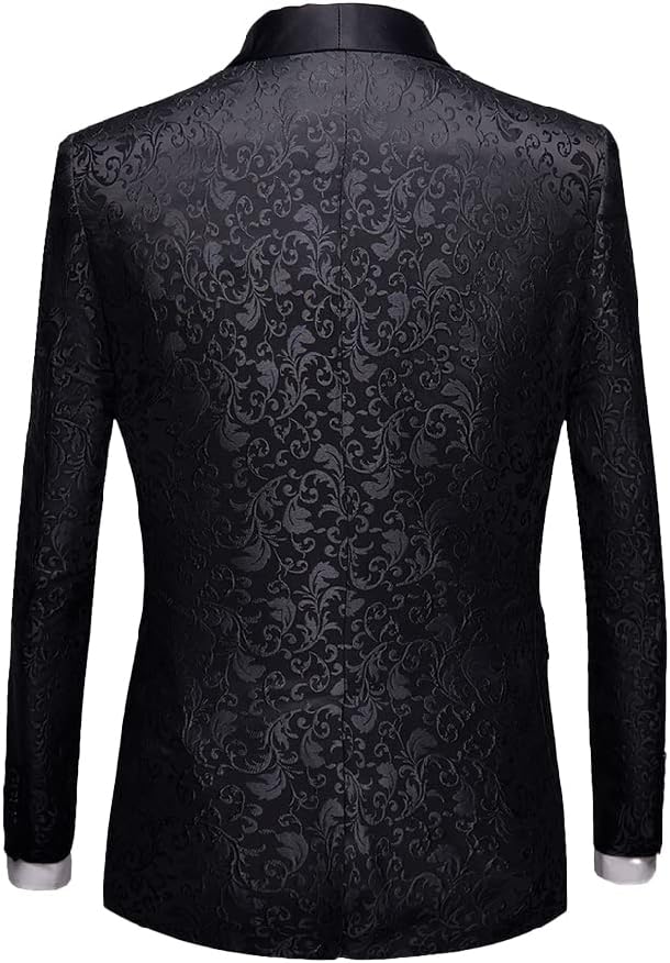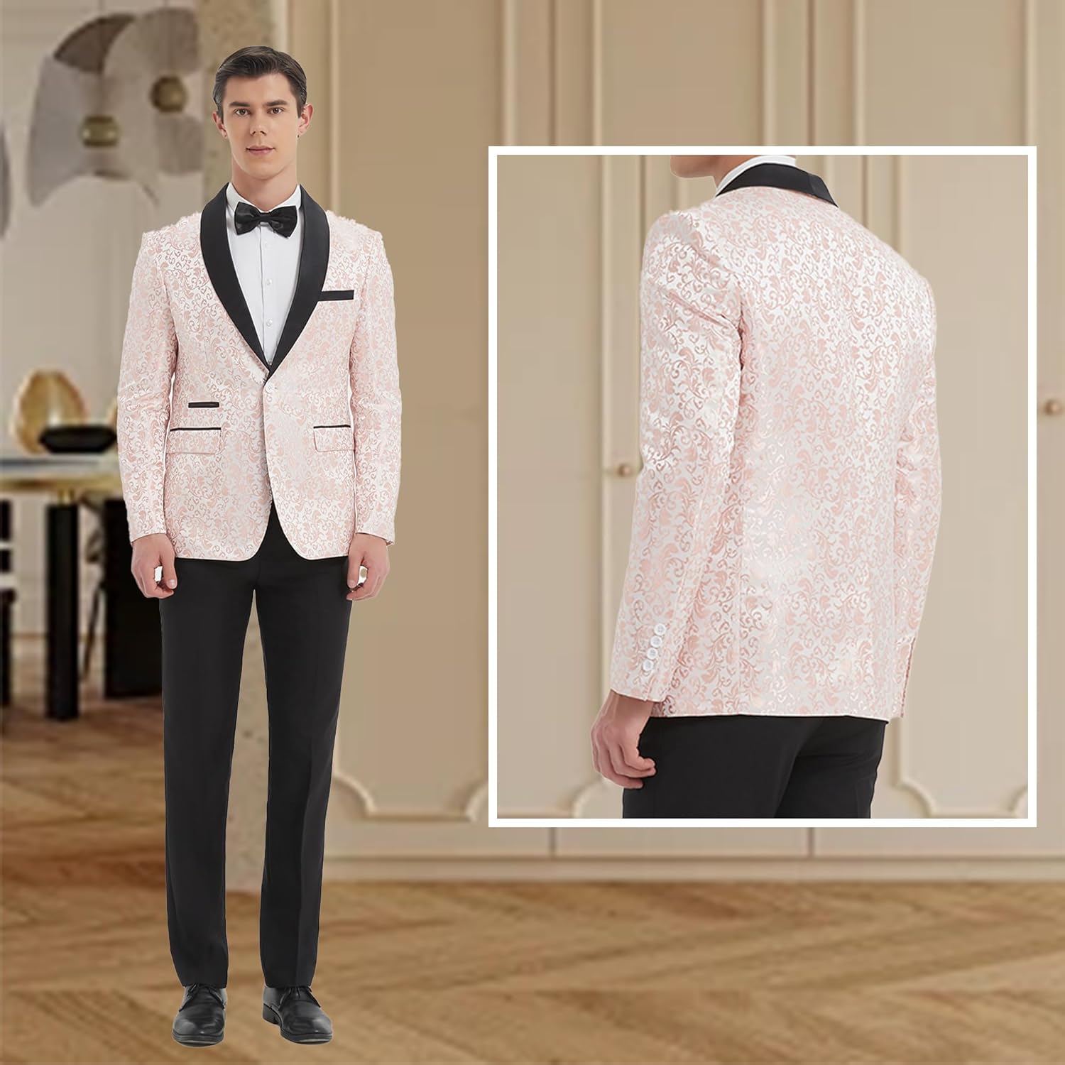 Men's Tuxedo Suit with Shiny Lapel and Patterned Blazer Two Piece Set