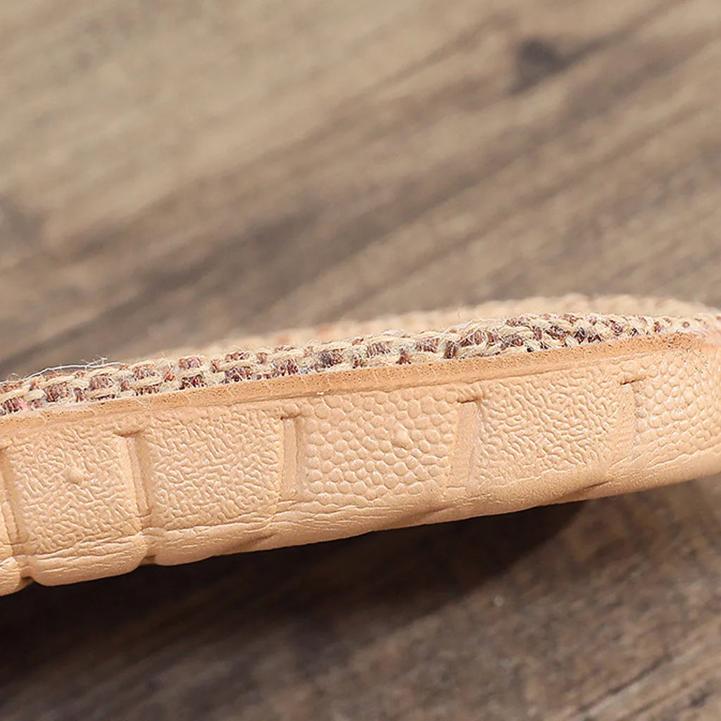 Enjoy easygoing style with these women's floral bowknot slippers, perfect for lounging or quick outdoor steps. The lightweight flax sole offers breathability, while the cute printed strap adds a sweet touch to any casual look. Ideal for relaxed days, home wear, or packing into a weekend getaway bag.